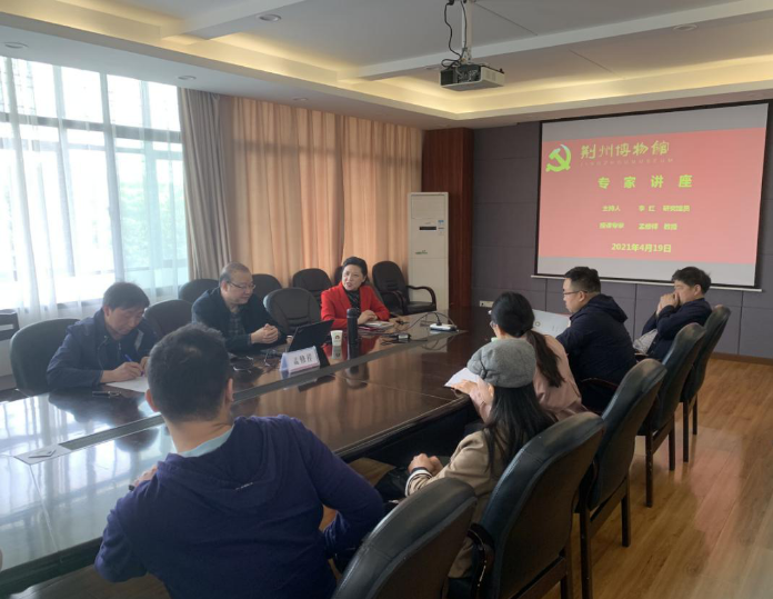 为加强学术交流,提高文博专业人员研究水平,4月19日,荆州博物馆邀请长江大学文学院资深院长、楚文化研究院教授孟修祥先生、中国博物馆学会常务理事王红星博士来馆开展《楚文化知识》、《荆州简史》学术讲座。讲座由副馆长杨开勇、研究馆员李红主持,我馆专业技术人员、博物馆志愿者、市文化学者、高校师生等数十人参加讲座。