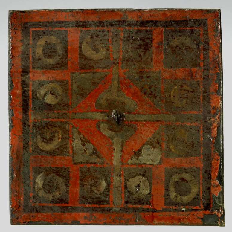 图三 荆州刘家湾99号墓出土彩绘方格云纹铜镜