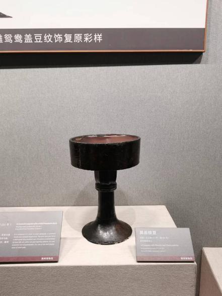 是东周时期的主要食器之一主要用于装肉酱和粮食上部为盘,下部为手持的柄。楚漆豆最早发现于春秋中期偏晚的湖北当阳赵巷楚墓中,至战国时期楚式漆豆已经十分发达出土数量仅次于耳杯