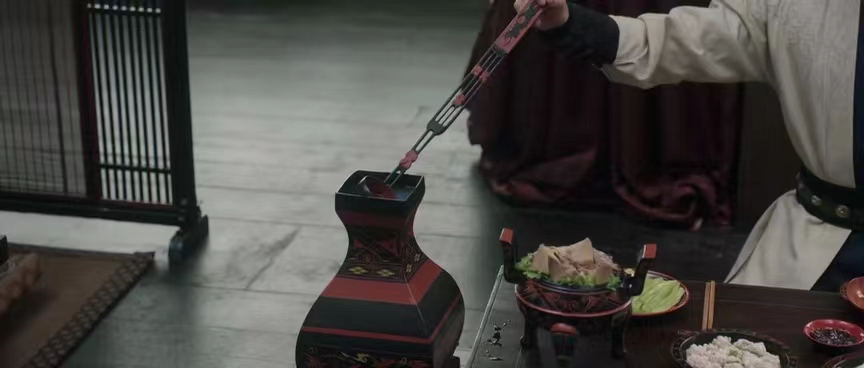 图一 用勺从钫中舀酒场景(图来源于电视剧《星汉灿烂·月升沧海》)