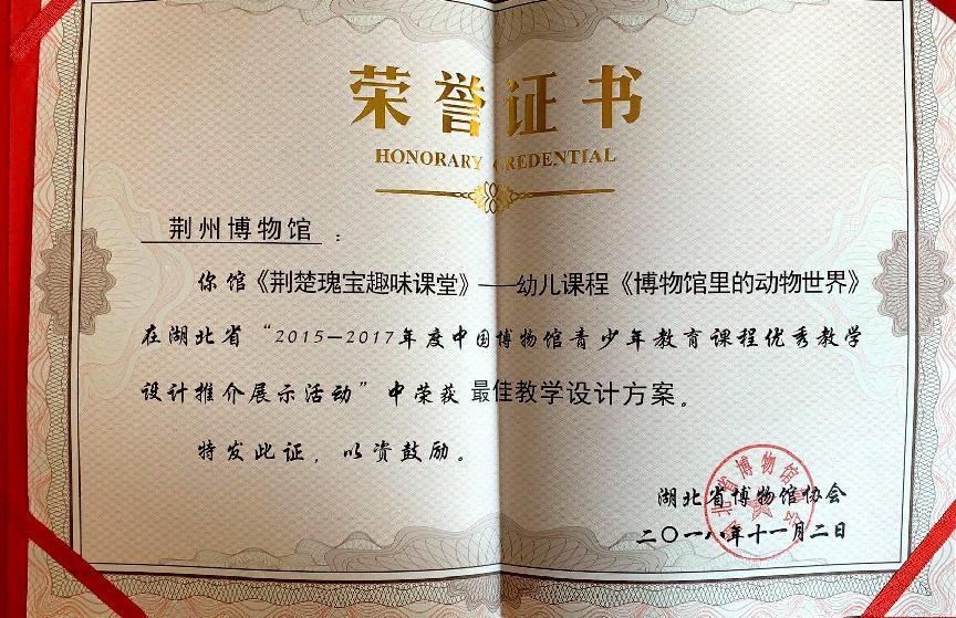 “荆楚瑰宝 趣味讲堂”荣获湖北省博物馆协会“最佳教学设计方案”