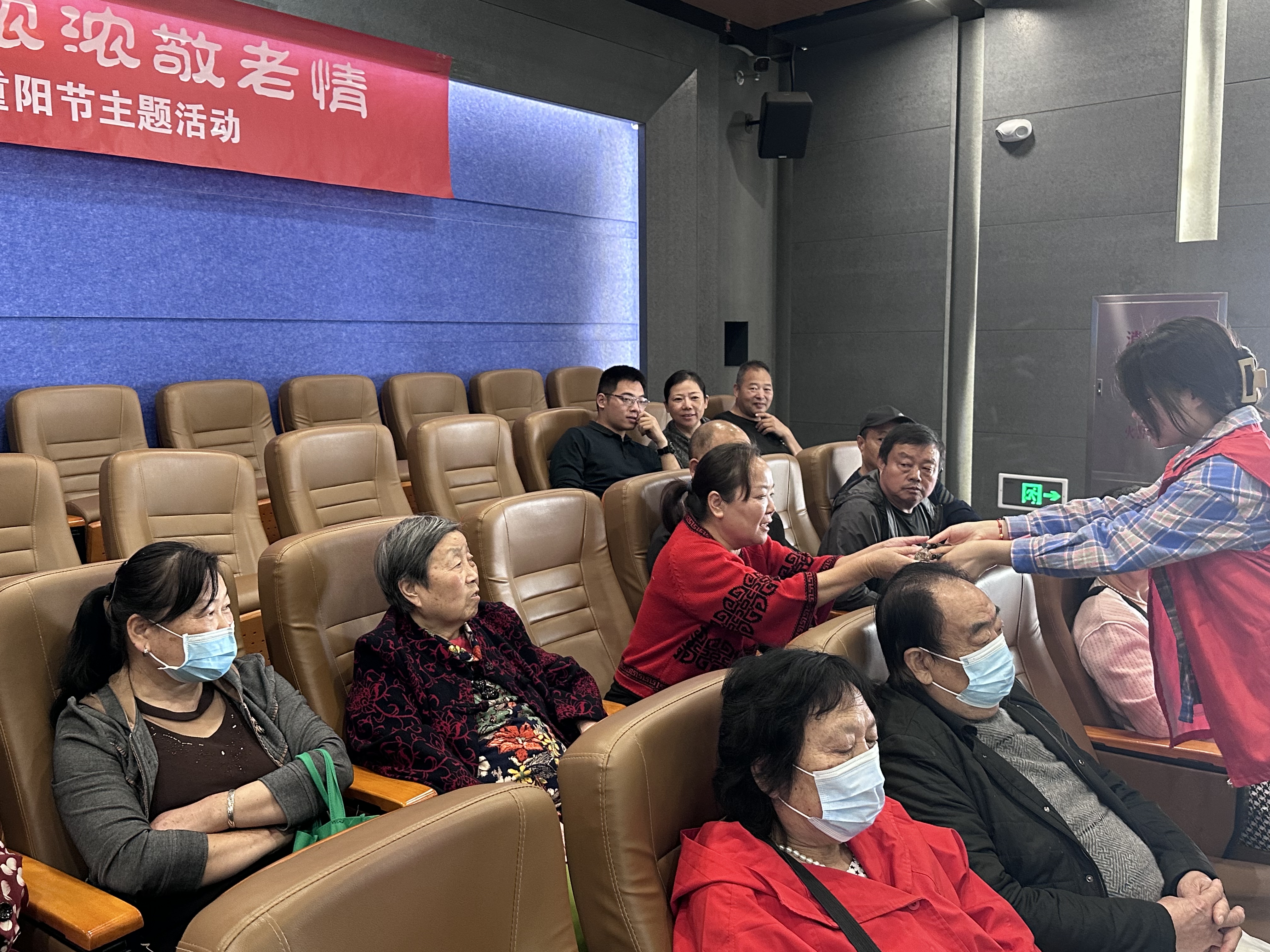 志愿者为老年朋友送上精美文创品