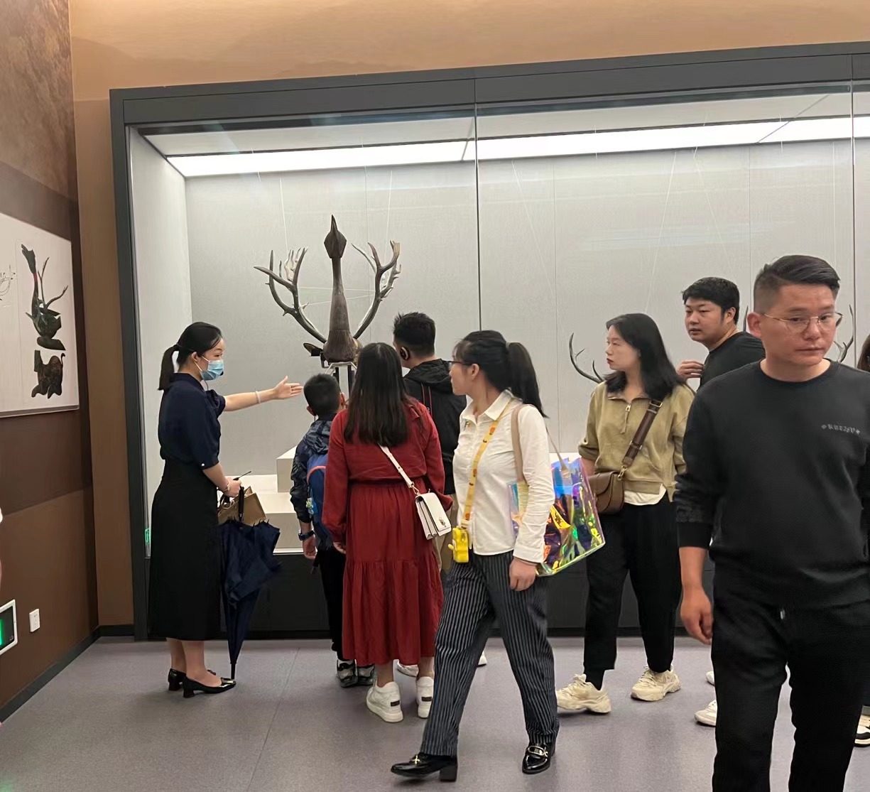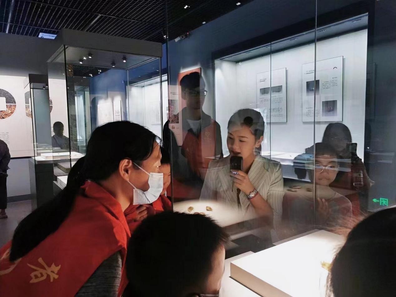 讲解员姚国萱带领志愿者参观《海昏侯刘贺墓出土文物展》