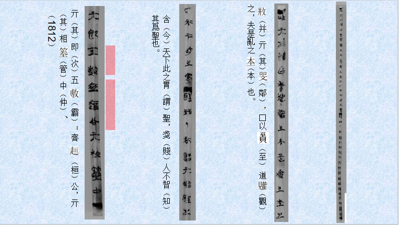 是齐桓公、晋文公、楚文王、越王勾践、吴王阖庐,与传统说法不同。其中“楚文王,亓(其)相穴(鬻)拳”,“鬻拳”见于《左传·庄公十九年》及《汉书·古今人表》,确为楚文王之臣,可见该篇作者确实认为楚文王应名列五霸,而非“楚庄王”的笔误。