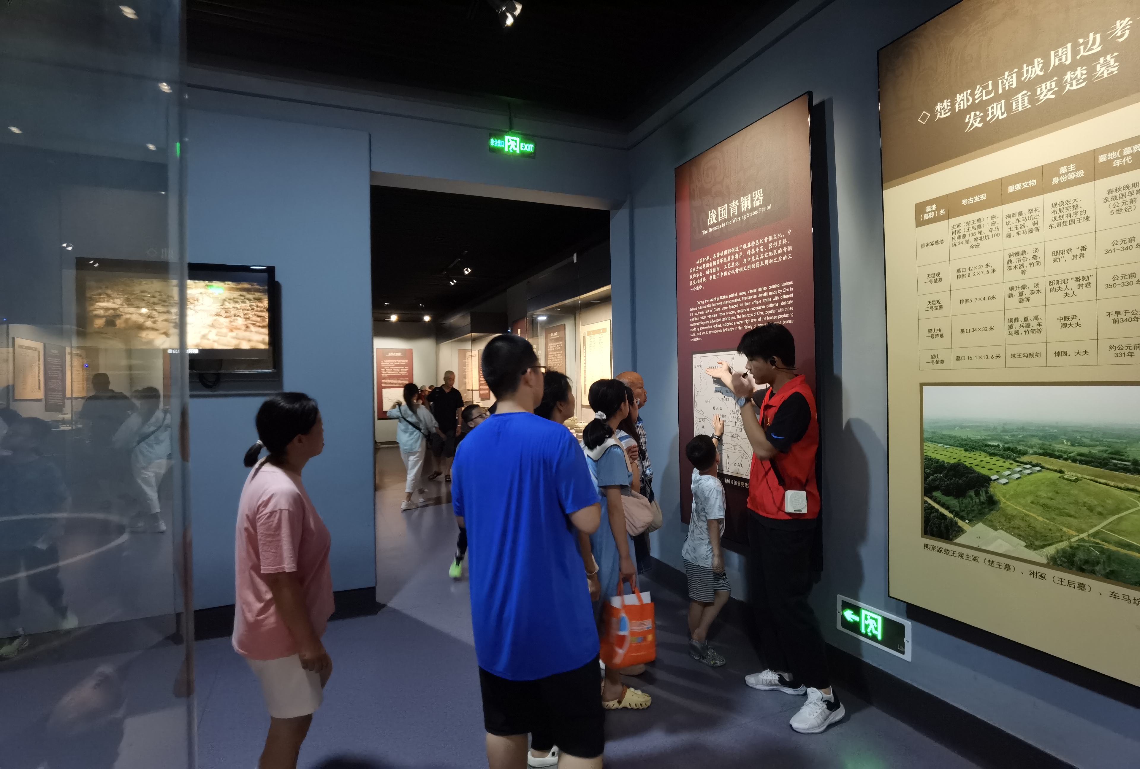 大学生志愿者为游客讲解简牍、青铜展厅