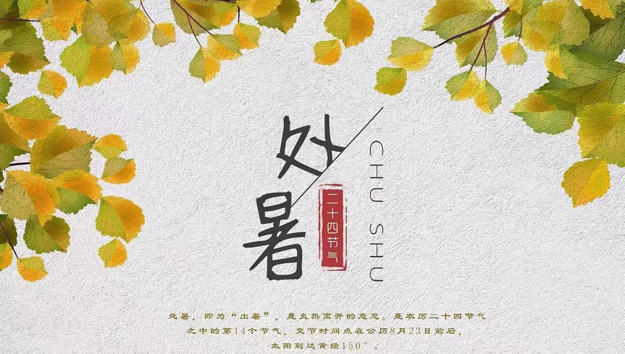 当太阳在黄道上运行到150度时,即每年的823日左右夏天的暑气算是真正结束这个节气就叫处暑。《月令·七十二候集解》“处,止也,暑气至此而止矣。……处暑,暑将退伏而潜处。”