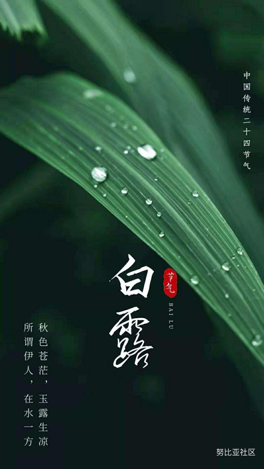 白露是二十四节气中的第十五个节气,这个节气表示孟秋时节的结束和仲秋时节的开始,是反映自然界气温变化的重要节令。《月令·七十二候集解“水土湿气凝而为露,秋属金,金色白,白者露之色,而气始寒也”。